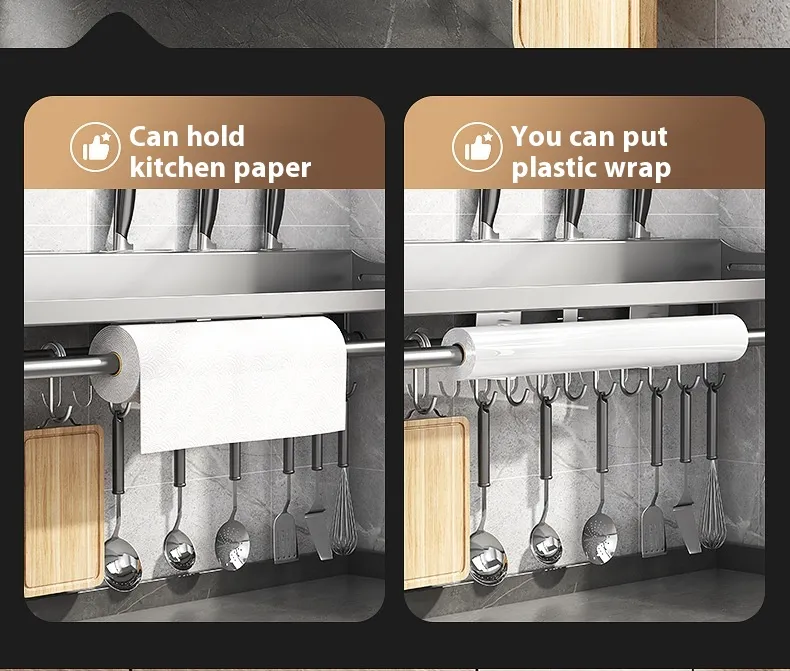 This shelf rack helps you organize your kitchen by keeping essentials like spices, utensils, or dishes neatly stored and easy to access. No more searching through drawers or cabinets to find what you need.