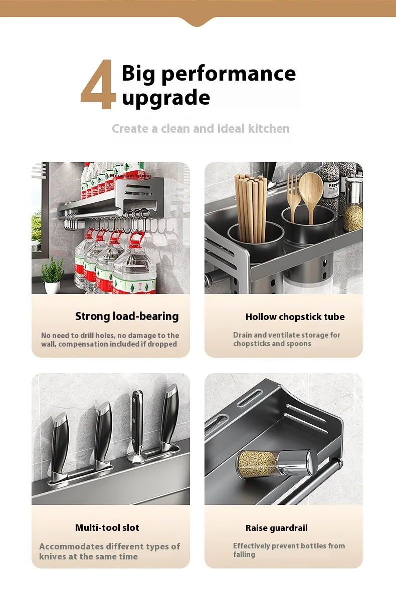 Using a Kitchen Wall Shelf Rack offers numerous advantages for organizing your kitchen and creating a more efficient workspace: