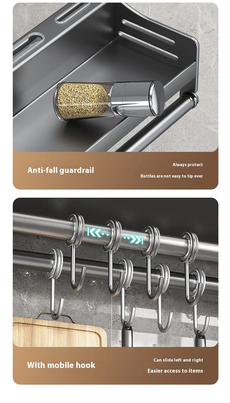 Space-Saving Design: By using vertical space, the wall shelf rack helps free up precious counter and cabinet space, making