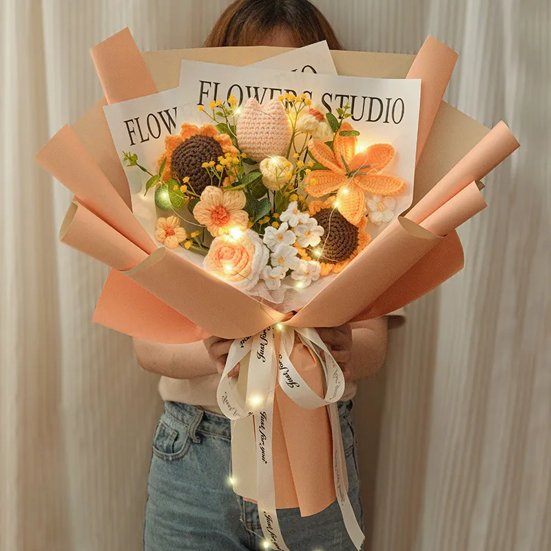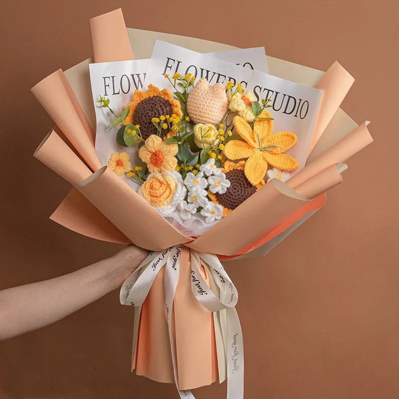 Each knitted wool bouquet is a handcrafted masterpiece, made with attention to detail and precision. The process involves carefully knitting individual flowers and arranging them into a beautiful bouquet. This handmade technique ensures that each bouquet is unique, giving you a one-of-a-kind accessory that stands out from the traditional floral arrangements. The art of knitting adds texture and depth to the flowers, giving them a soft, elegant appearance that cannot be replicated by machine-made products.