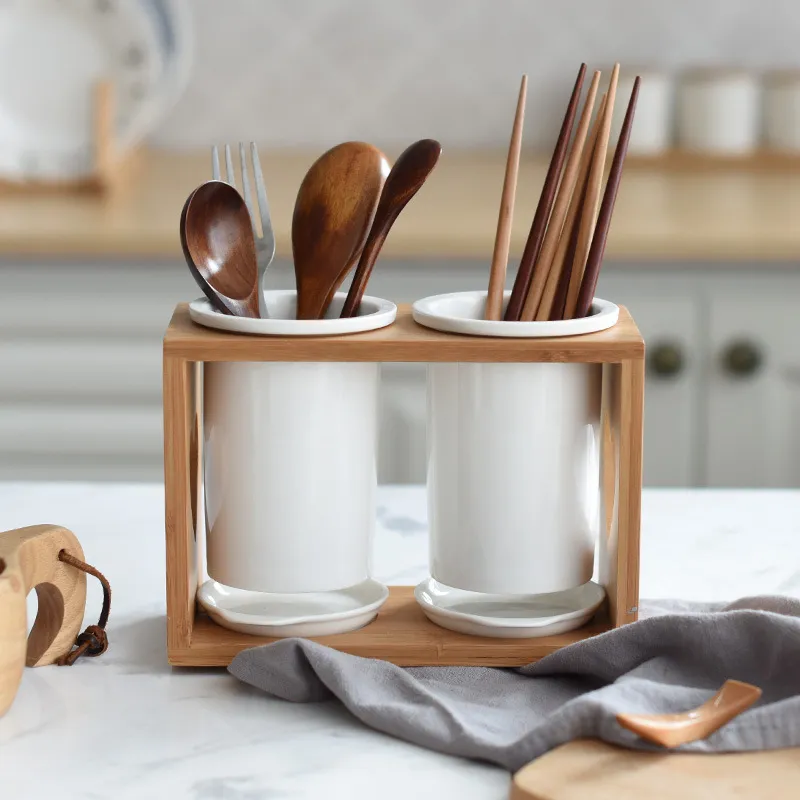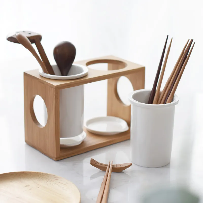 Number of layers (specifications): Double-tube bamboo and wood chopstick holder (round hole holder), double-tube bamboo and wood chopstick