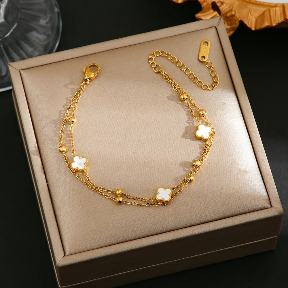 Korean Minimalist Mini Double-Sided Four-Leaf Titanium Steel Bracelet
