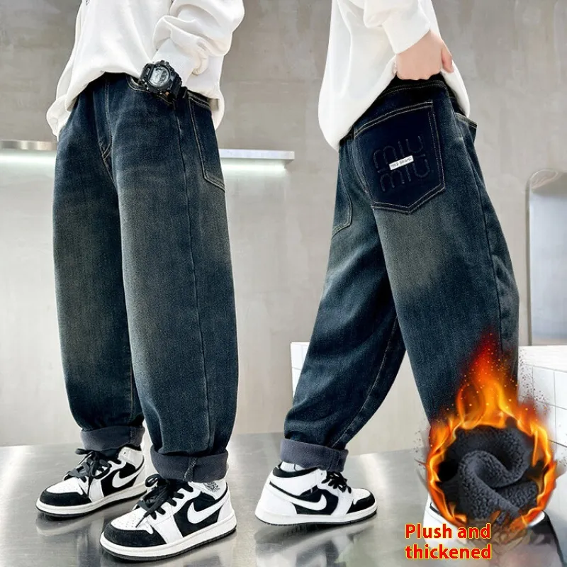 Korean Style Big Children Thick Warm Pants