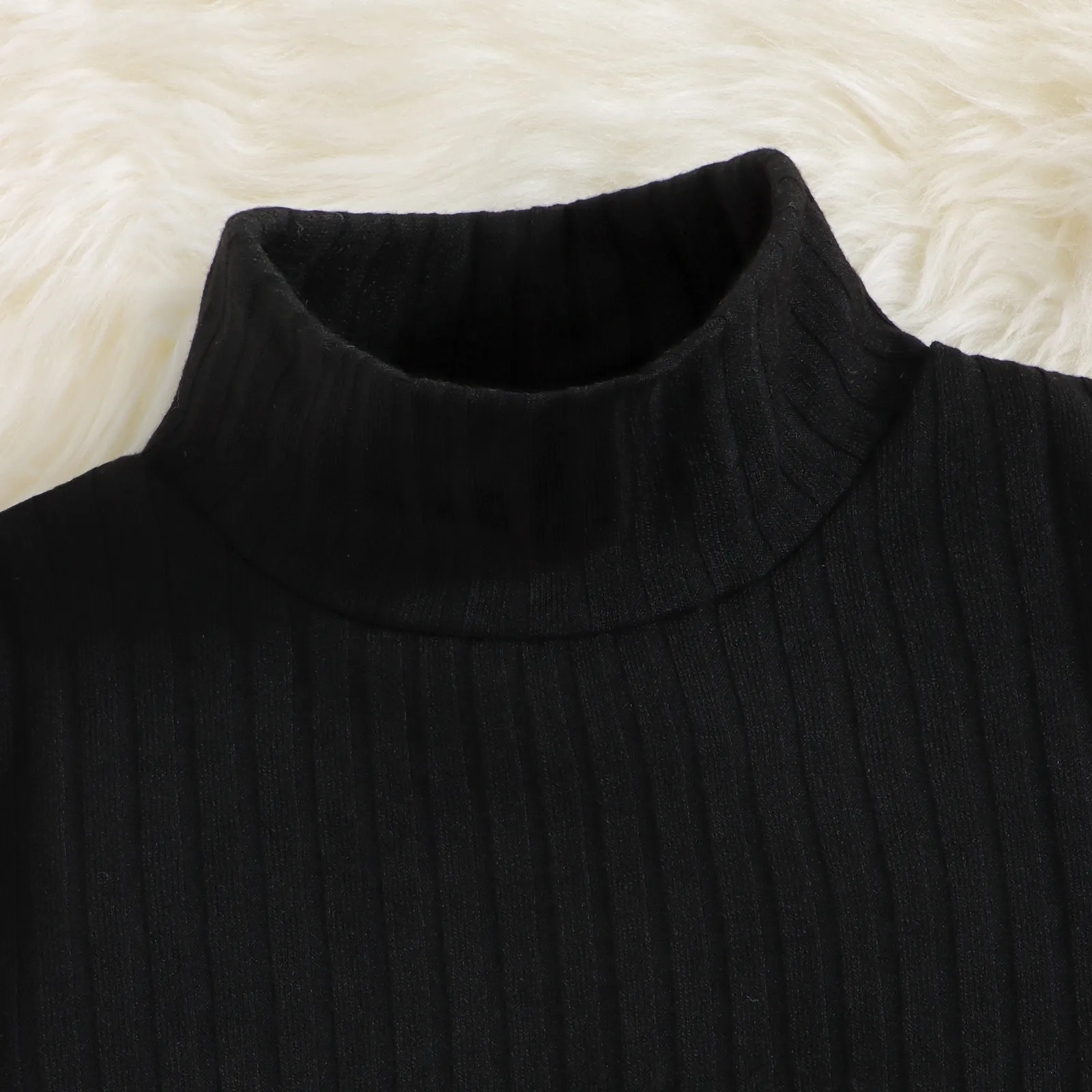 Crafted with soft, breathable cotton in a textured sunken stripe design, this long-sleeve turtleneck offers warmth and flexibility, perfect for layering in autumn and winter.