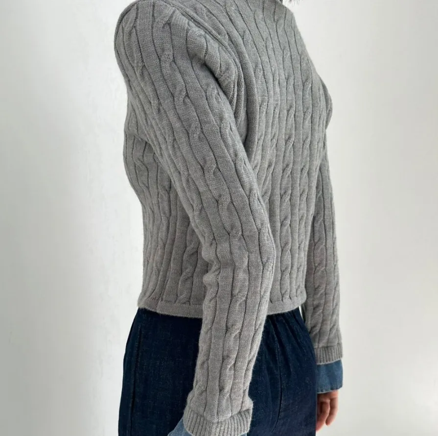 The addition of denim stitching elevates this sweater’s design, giving it a fresh, modern edge. The denim-like finish adds a touch of rugged sophistication, balancing the soft knit fabric. This blend of materials creates a visually interesting contrast, making the sweater both comfortable and stylish. Whether paired with jeans, skirts, or leggings, the denim stitching detail enhances the overall look.