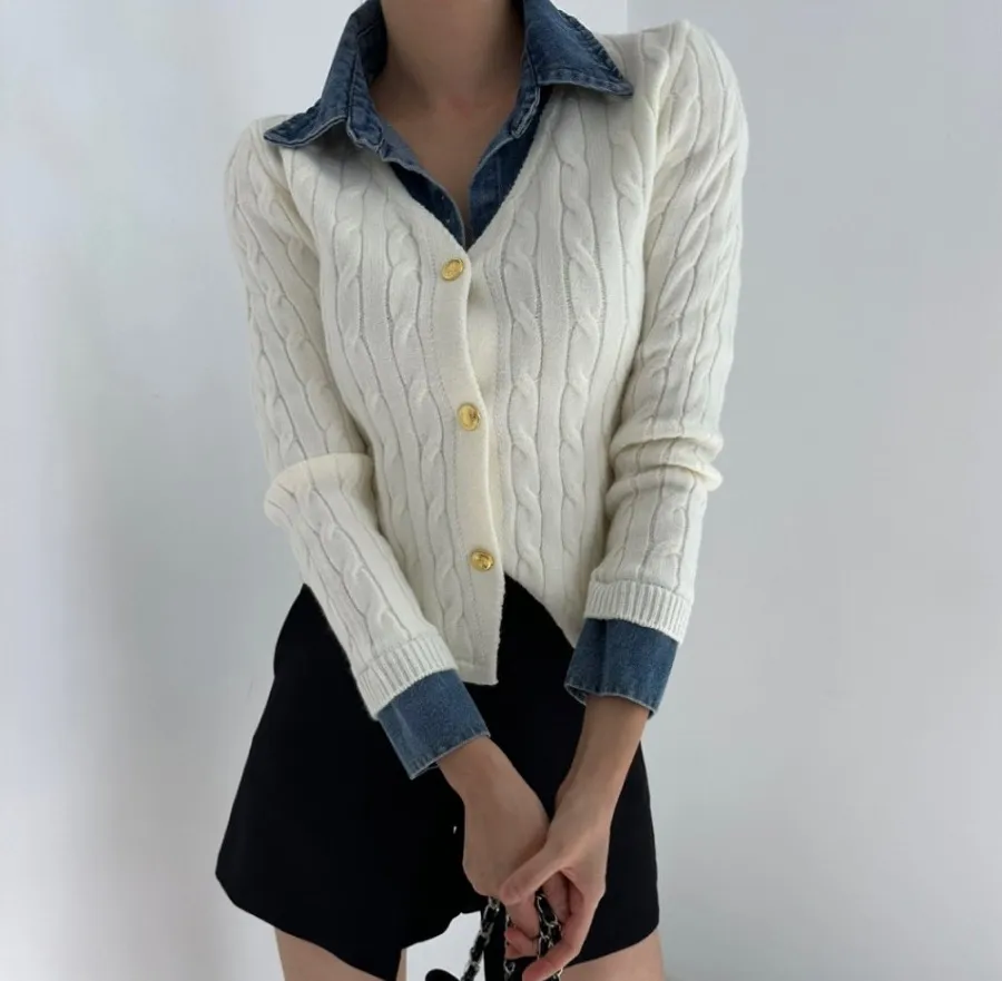 While the Korean Style Contrast Color Knitwear Denim Stitching Long Sleeve Sweater is perfect for New Zealand’s cooler months, it’s versatile enough to be worn year-round. During the transitional weather of autumn and spring, this sweater makes the ideal layering piece, and in winter, it’s a cozy option to wear under heavier coats. The breathable fabric ensures that it’s comfortable in varying climates, making it a must-have for any season.