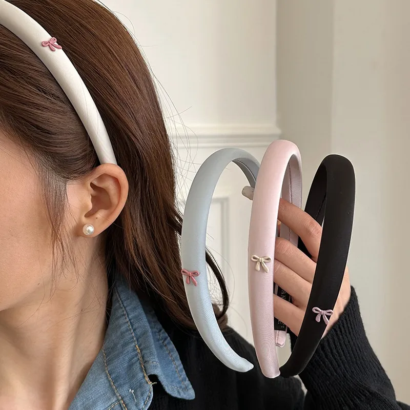 Color: pink bow headband, black bow headband, blue bow headband, beige bow headband