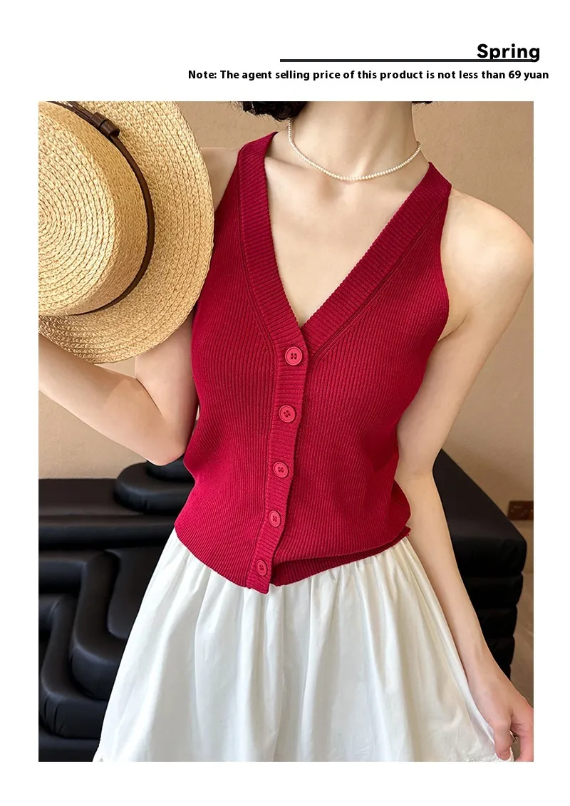 Korean Style Loose V-neck Sleeveless Knitwear