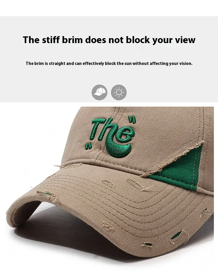 Why Choose the Korean Style Ripped Special Letter Embroidered Baseball Cap Big Brim?