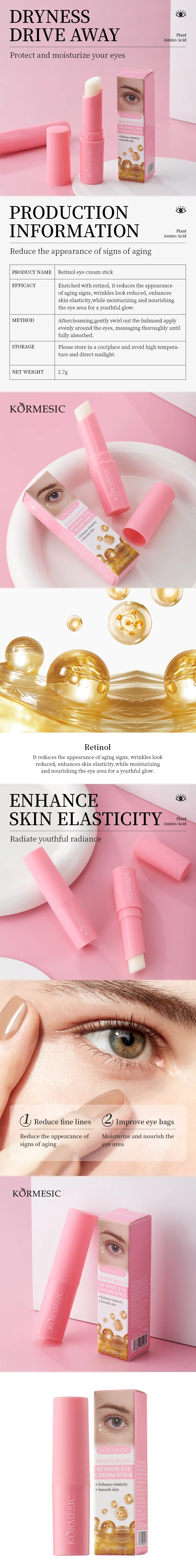 KORMESIC Retinol Eye Cream Stick is a powerful yet convenient skincare solution designed to rejuvenate and moisturize the