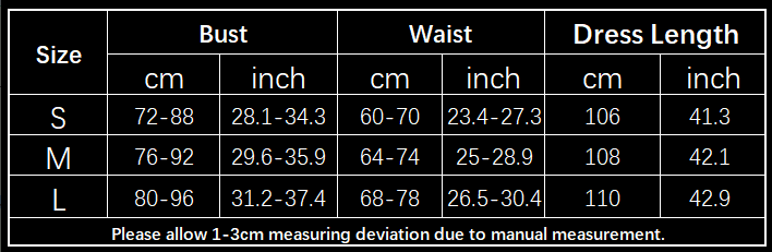 Available in multiple sizes, this dress is designed to accommodate different body types. The adjustable suspender straps and the flowy skirt