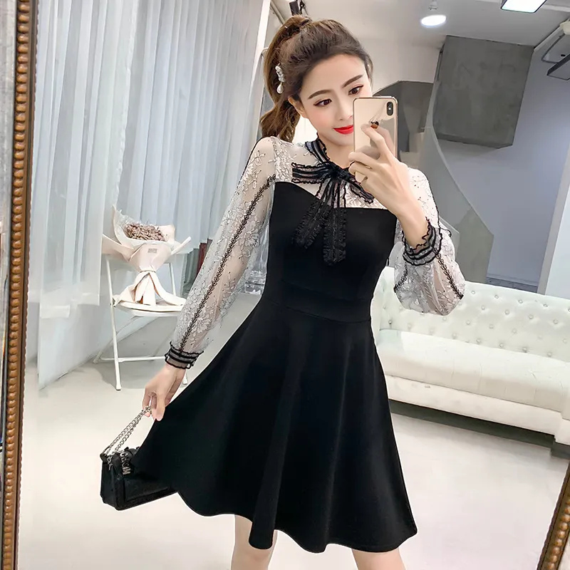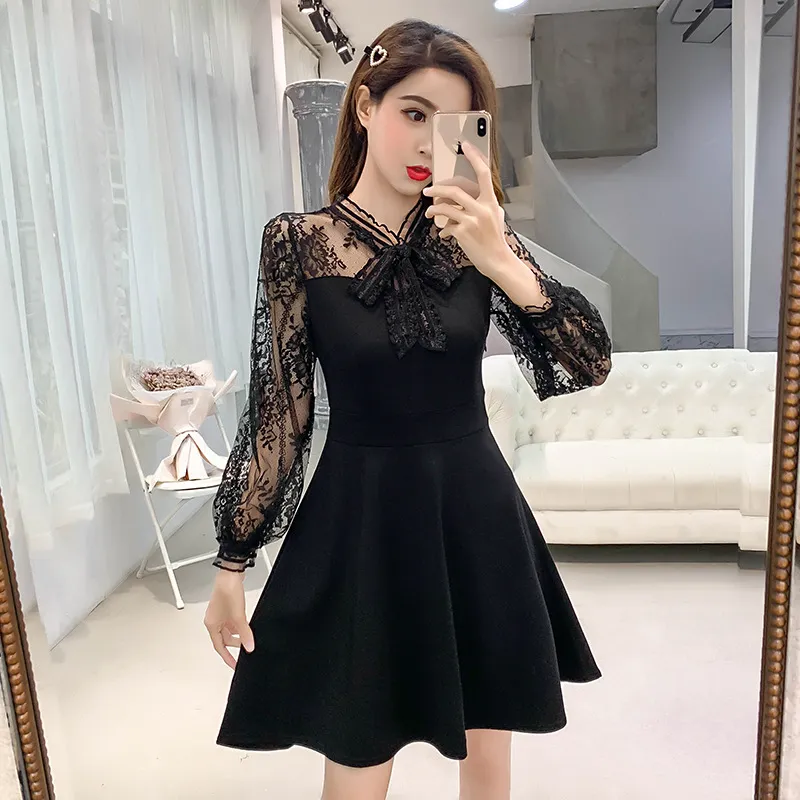 Why Choose the Lace Stitching Mid-length Temperament Dress?