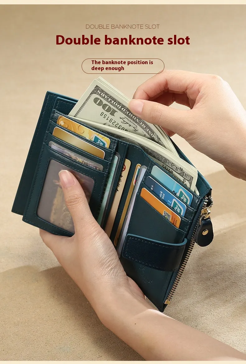 Ladies' RFID Anti-theft Swiping Zipper Hasp Multifunctional Coin Purse