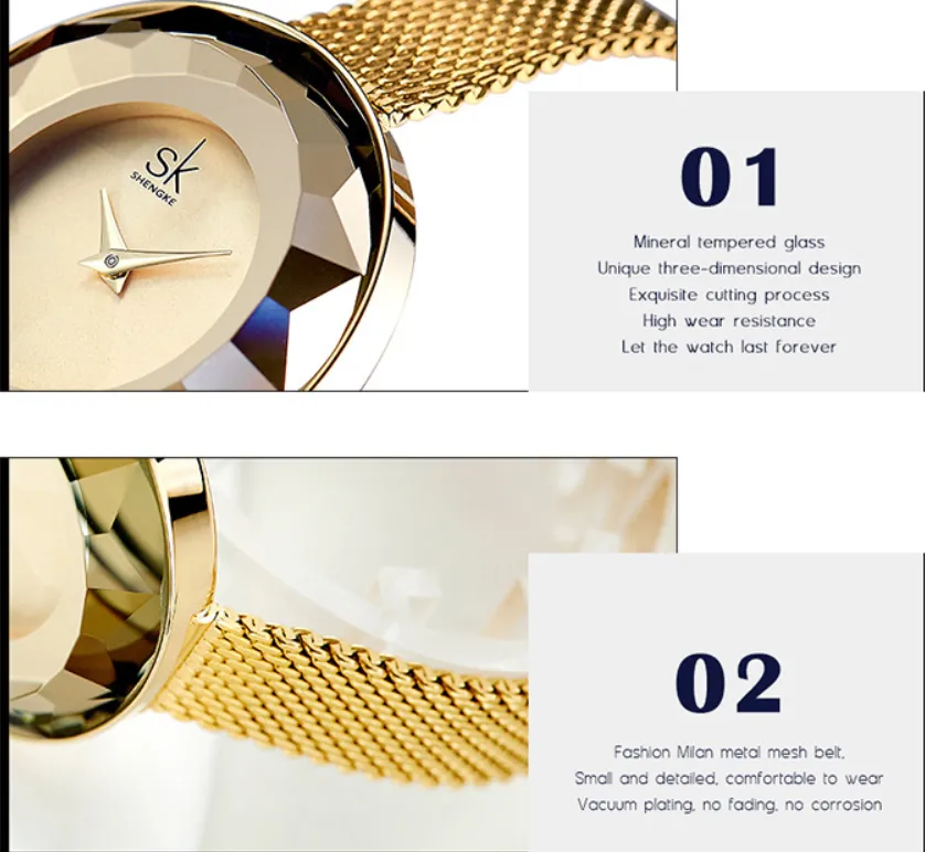 Stylish and Versatile: The new pattern glass dial and mesh belt design make this watch