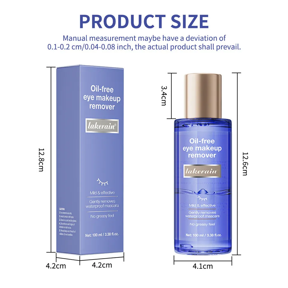 The Lakerain Oil-Free Eye Makeup Remover is designed to effectively remove even the most stubborn waterproof mascara and eye makeup without leaving behind a greasy residue. Its gentle formula is perfect for sensitive eyes, providing a soothing and refreshing clean that leaves your skin feeling soft and smooth.