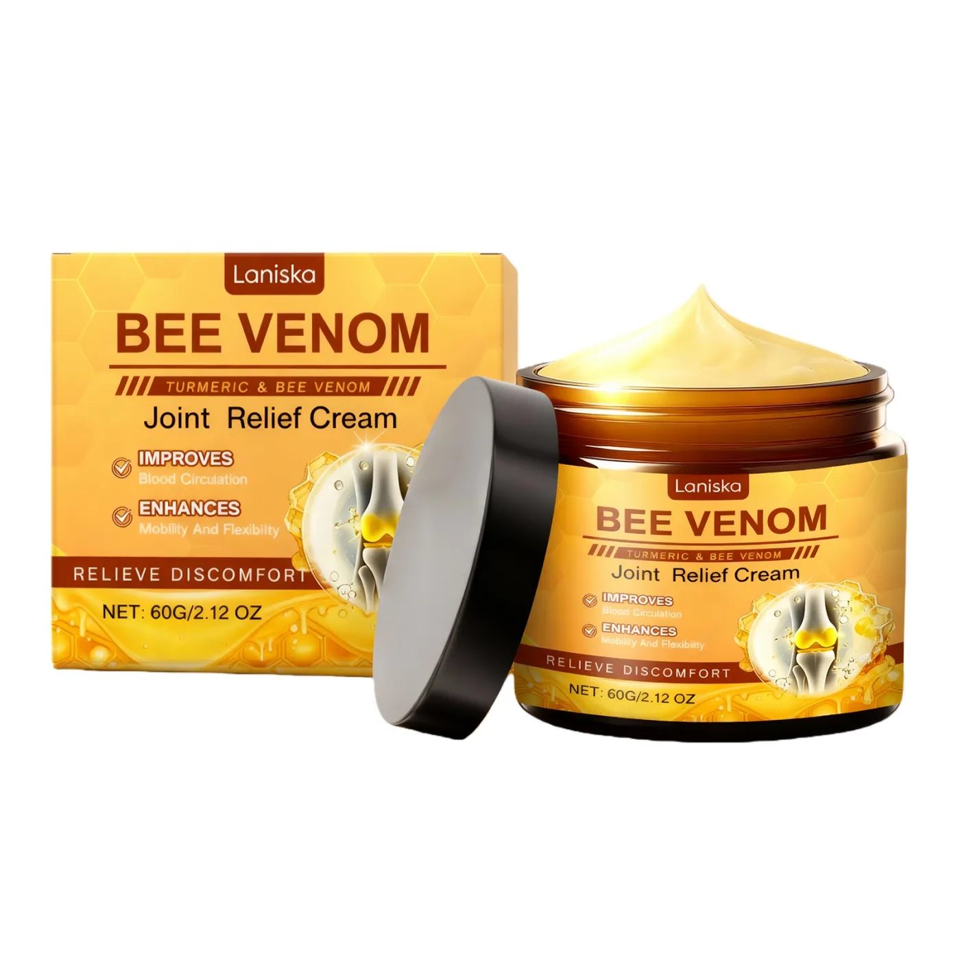 Meta Tag Description: Relieve joint pain and improve mobility with Laniska Bee Venom Turmeric Joint Relief Cream. Combines bee venom and turmeric for soothing, effective relief.