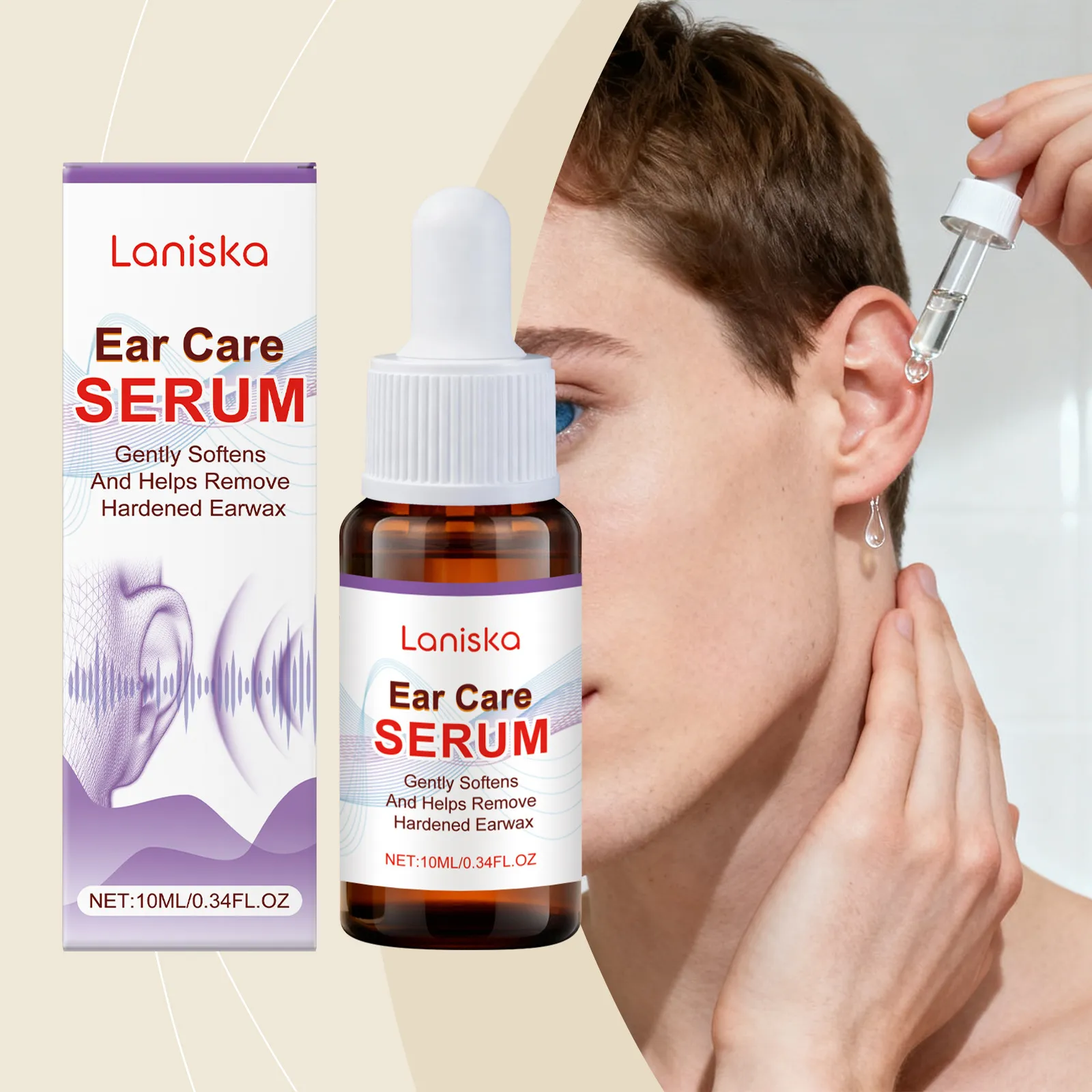 ear care solution, gentle ear cleanser, wax removal drops, ear hygiene support, comfortable ear care, mild ear solution, routine ear cleansing, Laniska ear solution