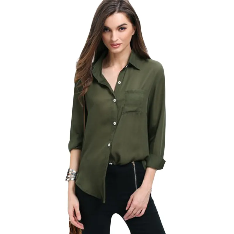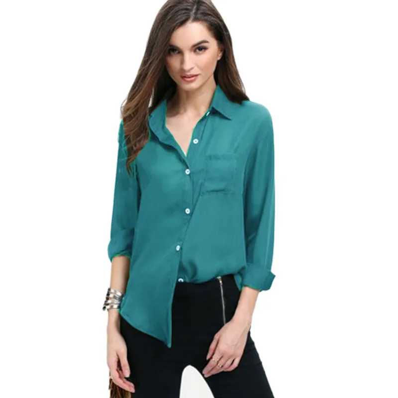 Whether you're dressing up for a business meeting, a dinner date, or a casual outing, this shirt provides the versatility and comfort you need. Its versatile design makes it easy to pair with a variety of bottoms—such as skirts, trousers, or jeans—and the sheer material adds a modern touch to any outfit. Available in a range of colors, this shirt can suit any season or occasion.