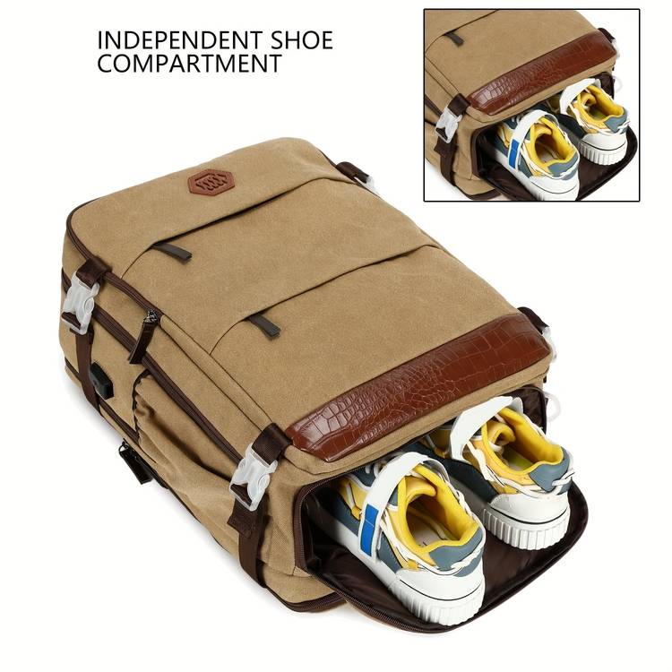 The Laptop Backpack is designed to meet the needs of modern travelers and busy professionals. With a spacious 40L capacity, a dedicated 17-inch laptop compartment, and a built-in USB charging port, this backpack combines functionality with style. Its flight-approved design makes it the ideal carry-on for air travel, while the shoe compartment ensures that your footwear stays separate from your other belongings. Whether you’re heading to college, traveling for work, or simply need a reliable daypack, this backpack provides everything you need to stay organized and comfortable on the go.