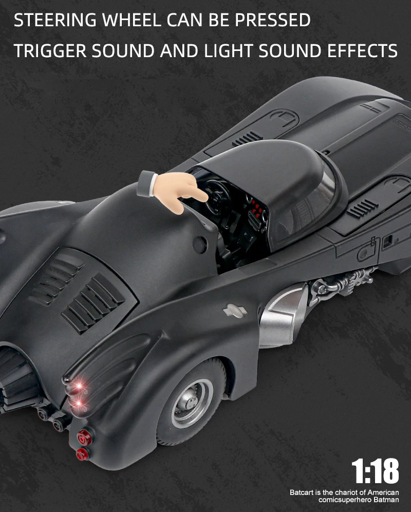Crafted with meticulous attention to detail, the 1989 Batmobile Diecast Model captures the dark, powerful essence of the original car, made from alloy metal for a solid, durable build. The addition of sound and light features brings the Batmobile to life, enhancing its appeal for display and hobby enthusiasts. In this product description, we’ll explore the key features, benefits, and why this Batmobile diecast model should be an essential addition to your collection.