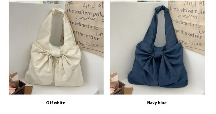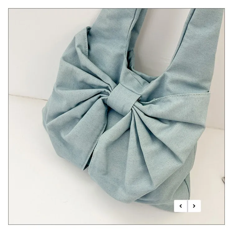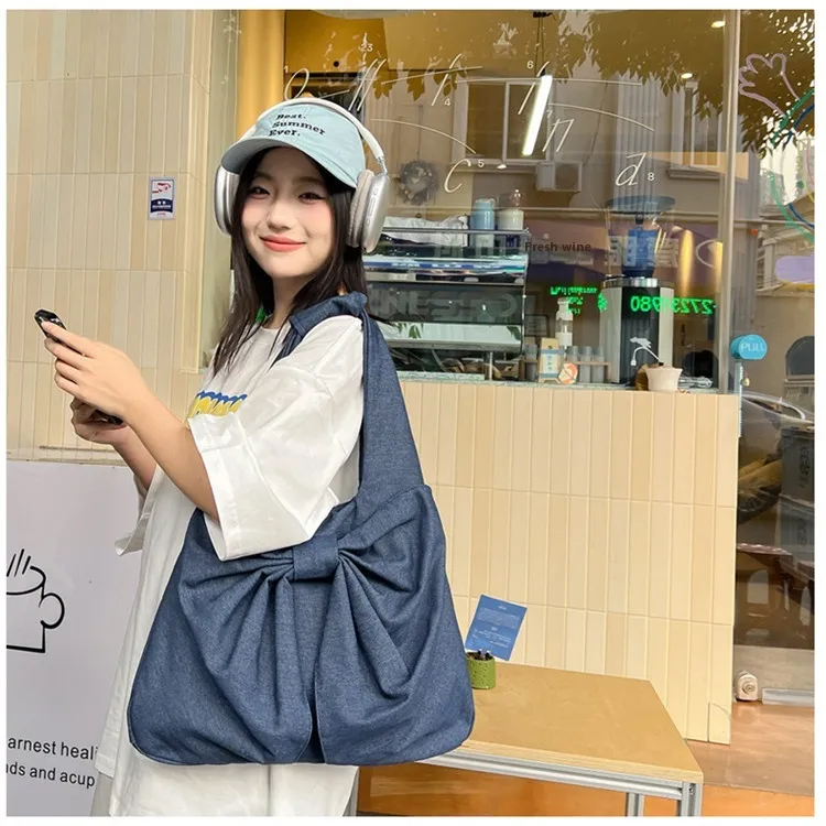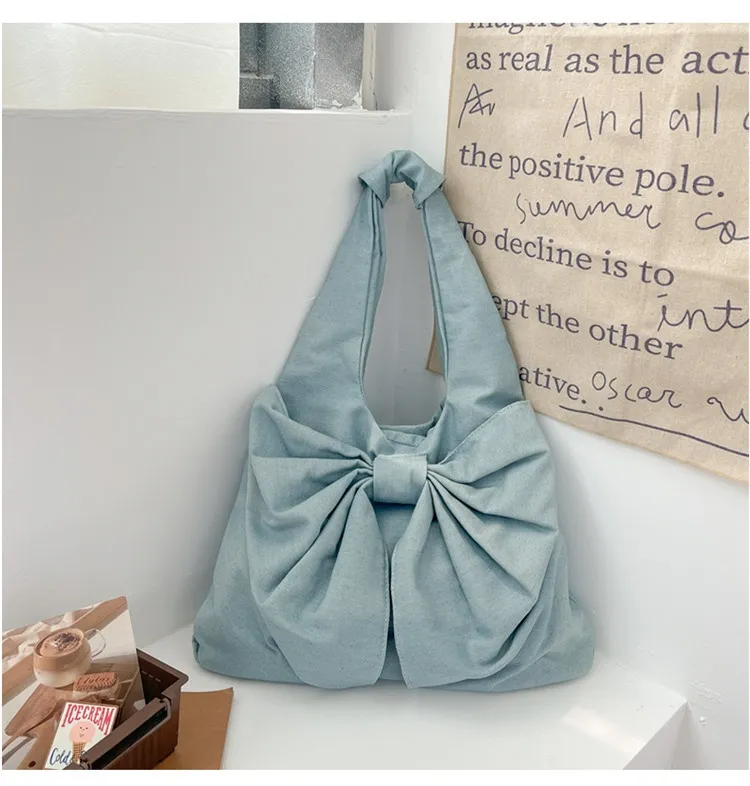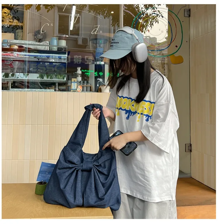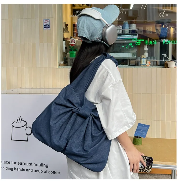 Large Capacity Bow Shoulder Underarm Tote Bag: A Chic Denim Canvas Bag for Every Occasion