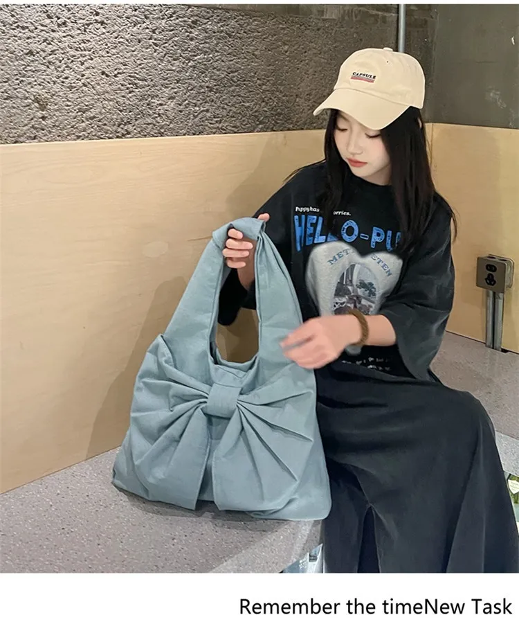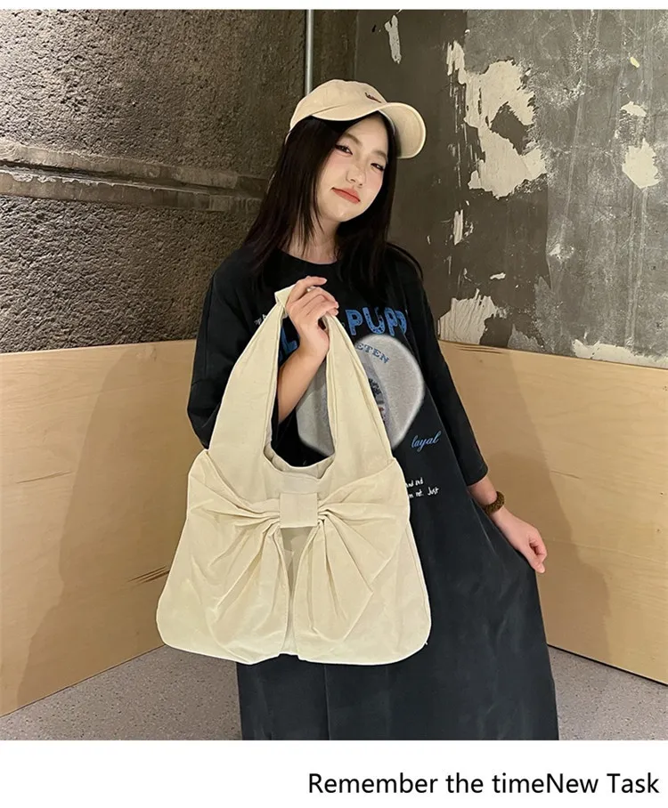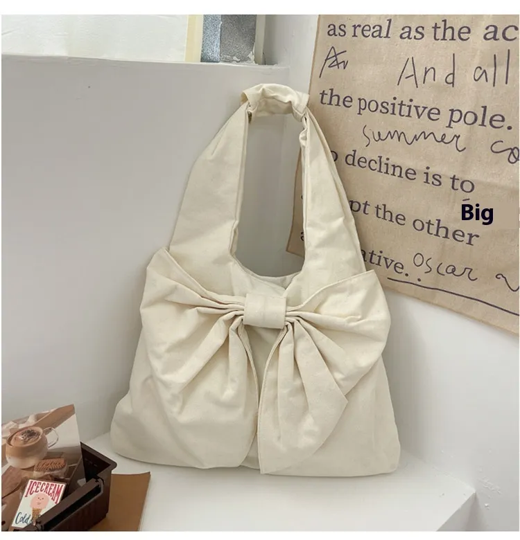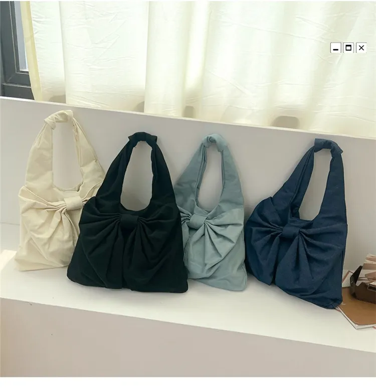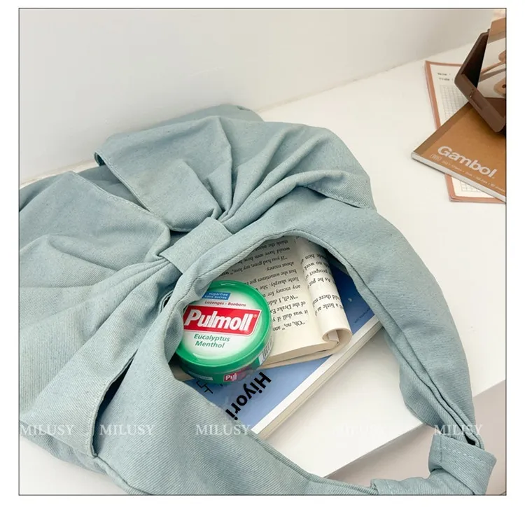 Large Capacity Bow Shoulder Underarm Tote Bag: A Chic Denim Canvas Bag for Every Occasion