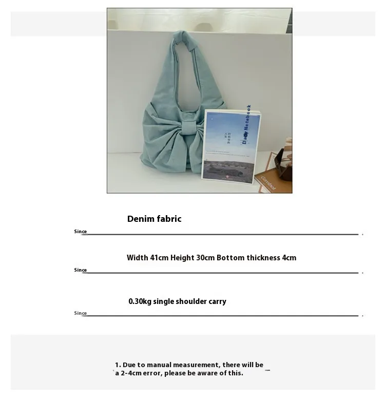 Step out in style with the Large Capacity Bow Shoulder Underarm Tote Bag, a trendy and functional accessory crafted from washed denim canvas. Perfect for modern lifestyles, this bag offers a spacious interior, unique bow detail, and versatile carrying options. Whether you're shopping, traveling, or heading to the office, this tote combines fashion and practicality effortlessly.