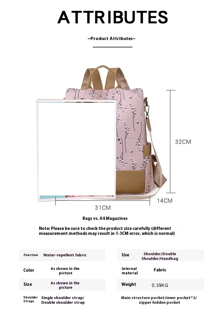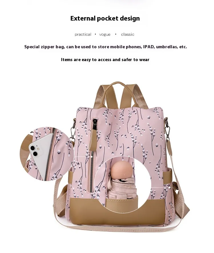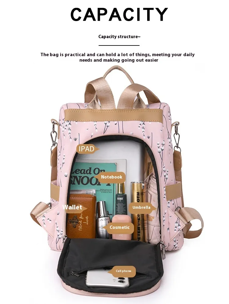Crafted from durable Oxford cloth, this backpack is water-resistant, wear-resistant, and easy to clean. Its robust construction ensures it stands up to daily use while maintaining its sleek appearance.
