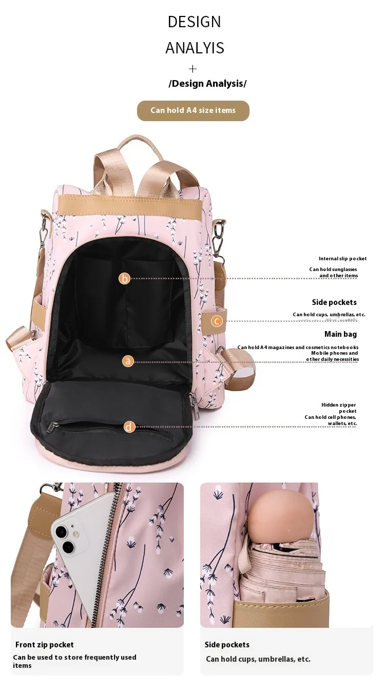 Crafted from durable Oxford cloth, this backpack is water-resistant, wear-resistant, and easy to clean. Its robust construction ensures it stands up to daily use while maintaining its sleek appearance.