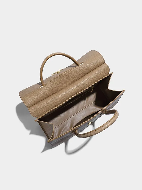 The sleek and minimalist design of this tote bag ensures that it can complement any outfit, from professional workwear to casual weekend attire. Available in neutral shades like black, navy, and gray, as well as classic brown leather options, it is easy to pair with any wardrobe choice. The simple yet elegant look adds a touch of sophistication to your ensemble without overpowering your style.