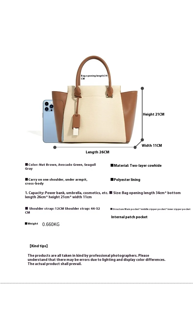 Large Capacity Cowhide Tote Simple Commute All-matching