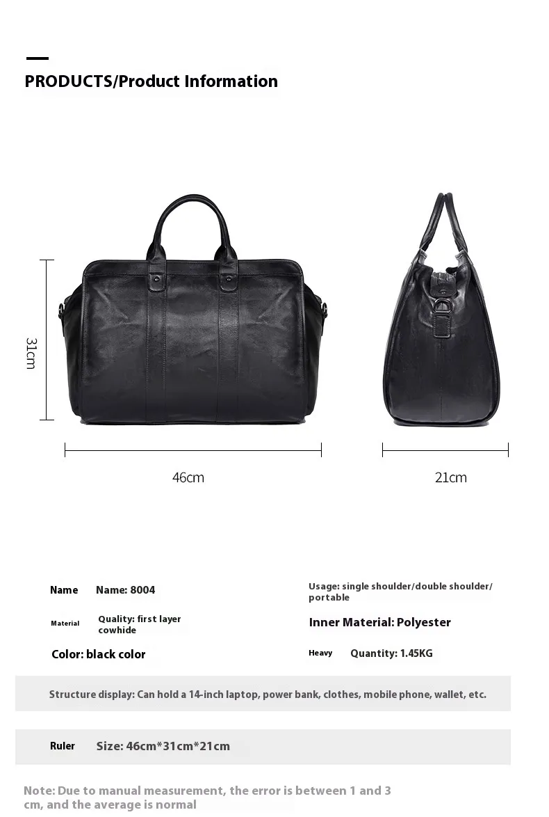 Large Capacity Genuine Leather Travel Luggage Bag Cowhide Handbag