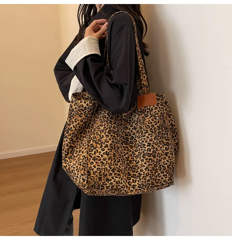 Large Capacity Leopard Print Canvas Tote Bag