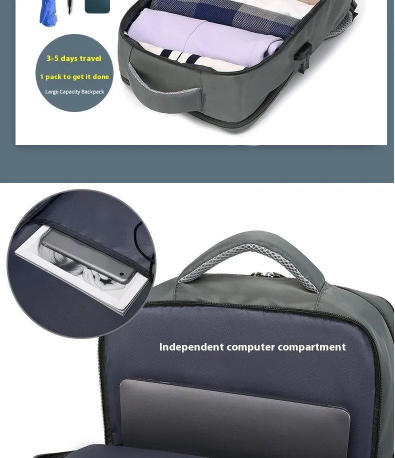 Our Large Capacity Men's Backpack Lightweight Short Trip is crafted from high-quality, water-resistant fabric, ensuring longevity and reliability. It is built to withstand travel conditions while maintaining a sleek and stylish look.