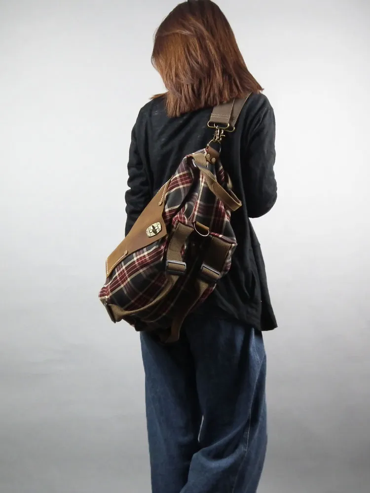 The bold red checked pattern sets this backpack apart, making it a stylish accessory that stands out in a crowd.
