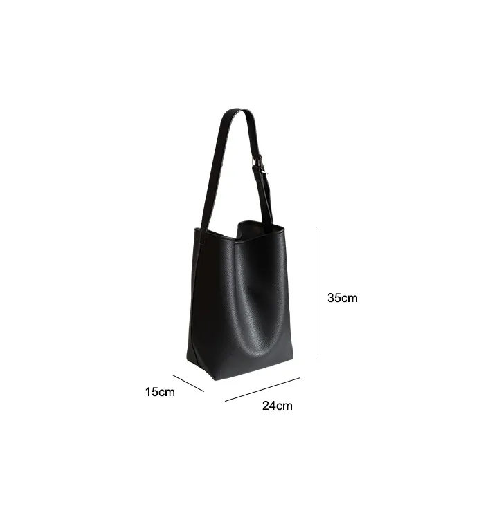 Large Capacity Solid Color Simple Lychee Pattern Bucket Bag