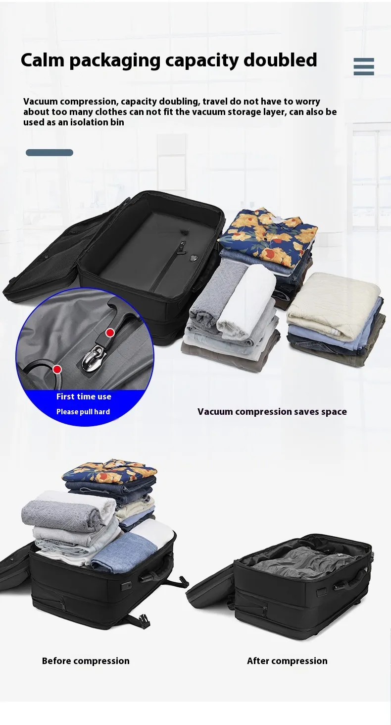 Introducing the Large Capacity Vacuum Compression Backpack, designed for the modern traveler who values functionality, security, and