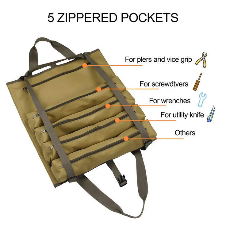 Features various compartments to store tools, gadgets, documents, and personal items, making organization effortless.