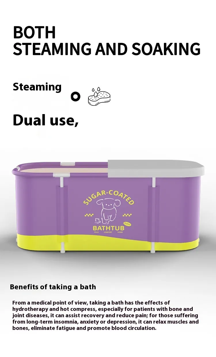 The Large Portable Bath is designed for quick setup and easy storage. It can be inflated or assembled in just minutes, making it ideal for use in a variety of settings. Once you're done, it can be deflated or folded into a compact size for easy storage and transportation, making it perfect for camping, travel, or small living spaces.