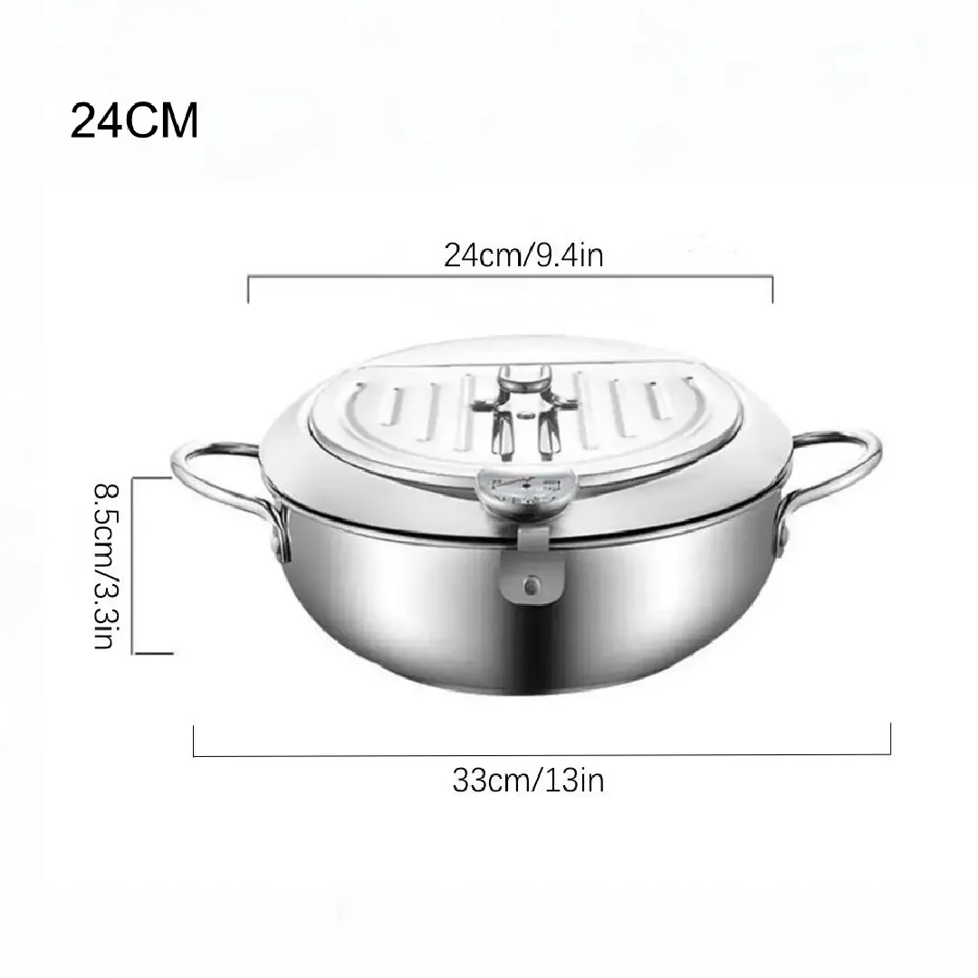 Stainless Steel Deep Fryer Pot,1 Count Frying Chicken Pot with Temperature Control & Lid,Kitchen Accessories,Japanese Style Tempura Fryer Pan for Home Kitchen,Kitchen Gadgets