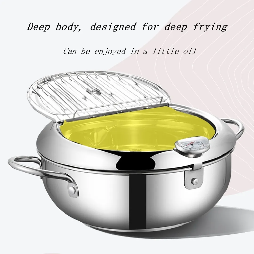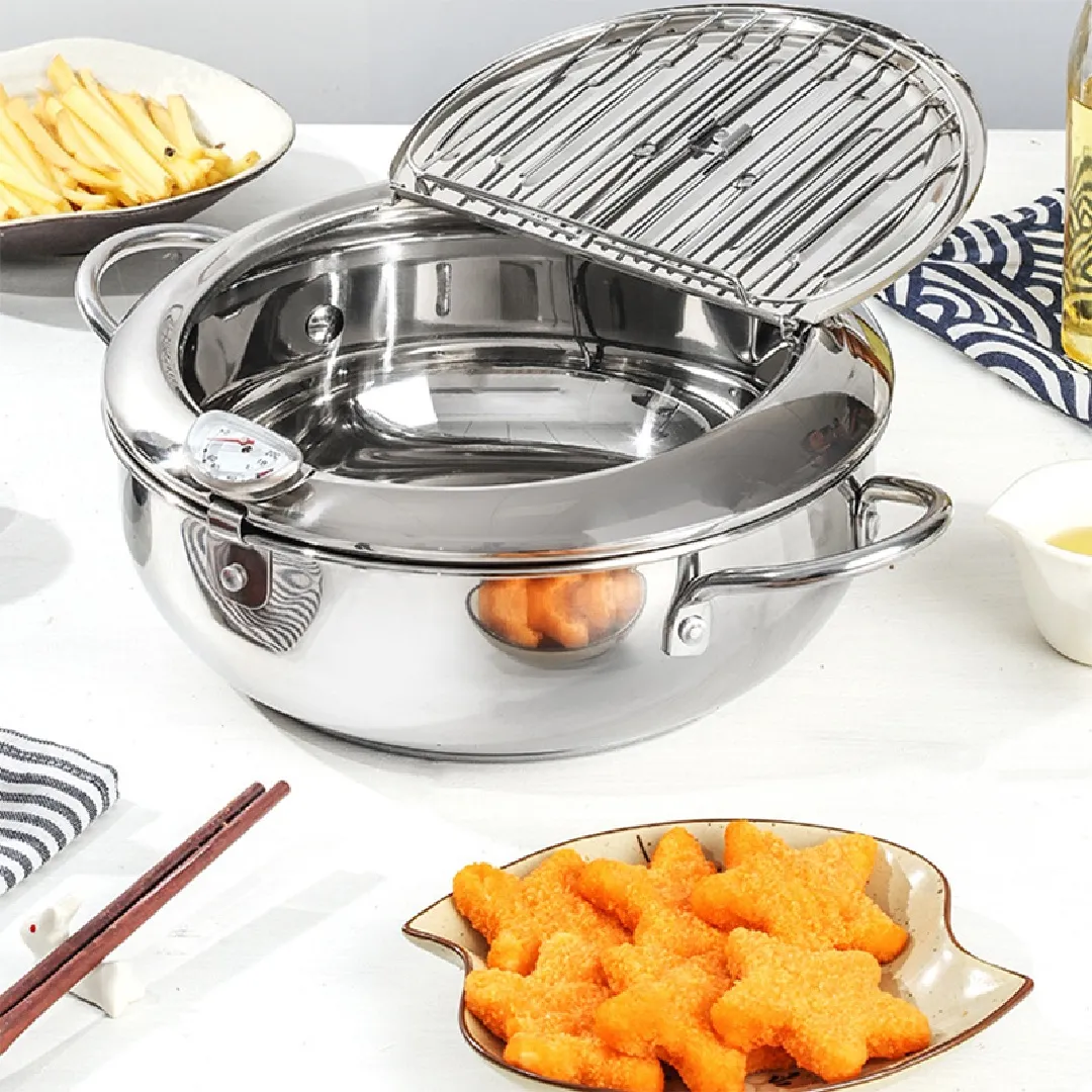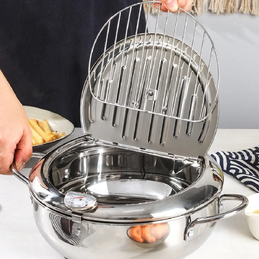 Stainless Steel Deep Fryer Pot,1 Count Frying Chicken Pot with Temperature Control & Lid,Kitchen Accessories,Japanese Style Tempura Fryer Pan for Home Kitchen,Kitchen Gadgets