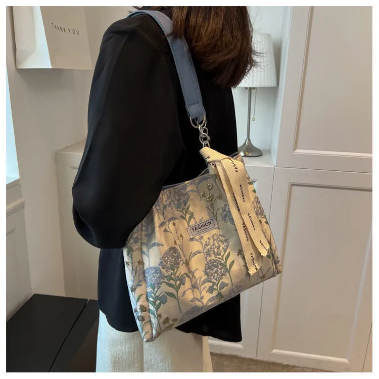 Large Shoulder Bag Summer Flower Young Women's Canvas