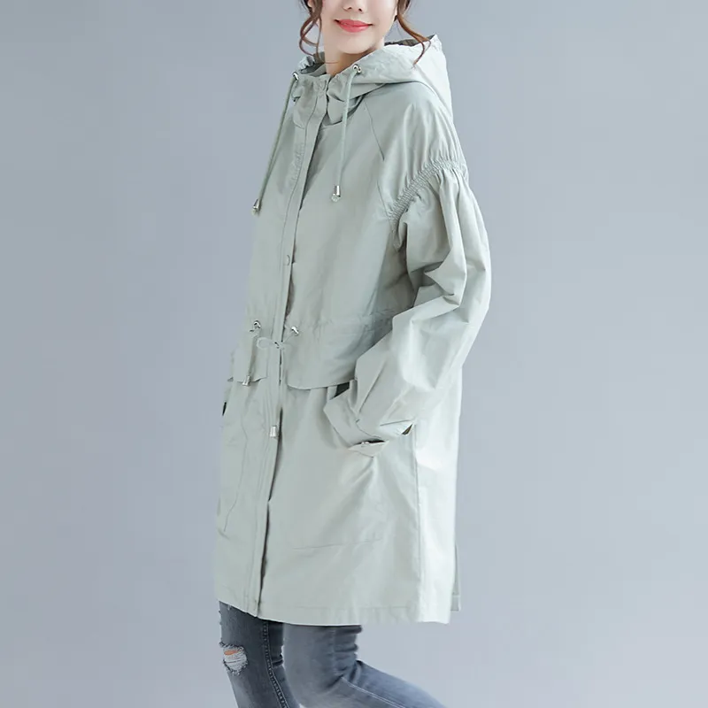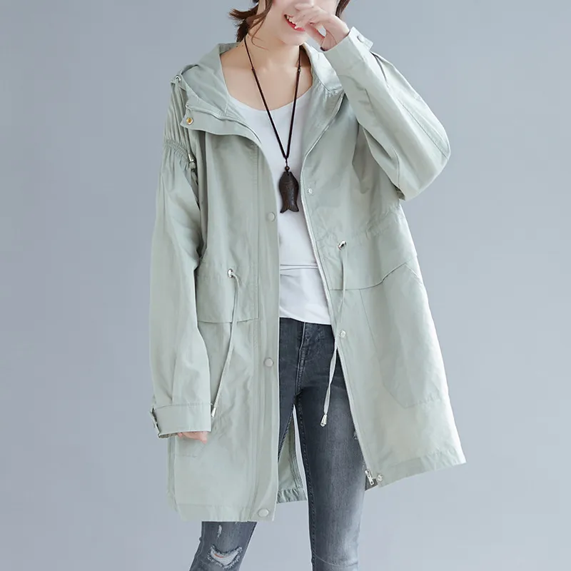 Large size autumn 200 kg Korean loose mid-length hooded trench coat