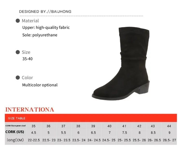 Our Large Size Thick Heel Pointed Toe Mid-Calf Smoke Pipe Boots for Women deliver the perfect blend of fashion, comfort, and versatility. Designed to suit all occasions, these boots are a must-have addition to your footwear collection.