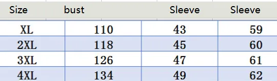 Size: XL, 2XL, 3XL, 4XL