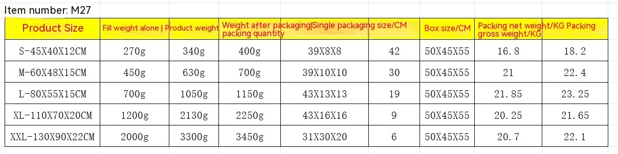 sleeve),XL code 110X70X20CM (excluding inner sleeve), size XXL 130X90X22CM (excluding inner sleeve)