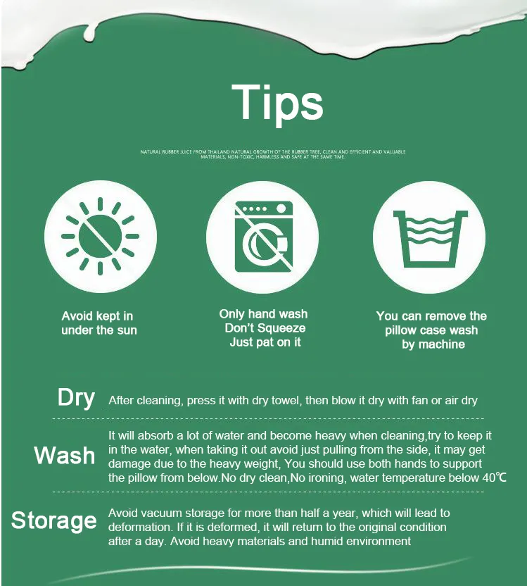 Natural Latex: Made from natural latex, this pillow offers a sustainable and eco-friendly option for those looking for a