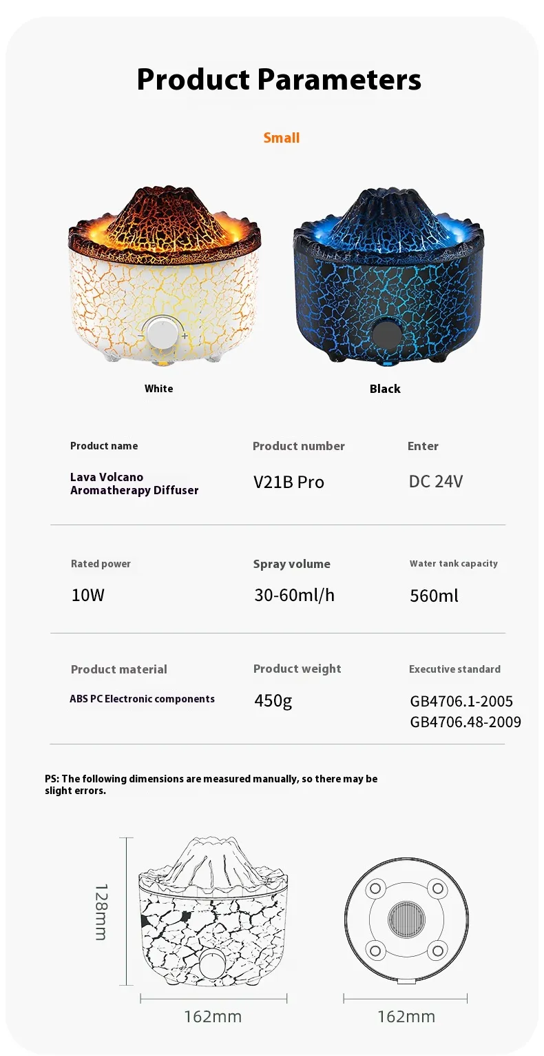 Atomization quantity: Volcano mode: 5-10ML/h; Flame mode: 30ML/h