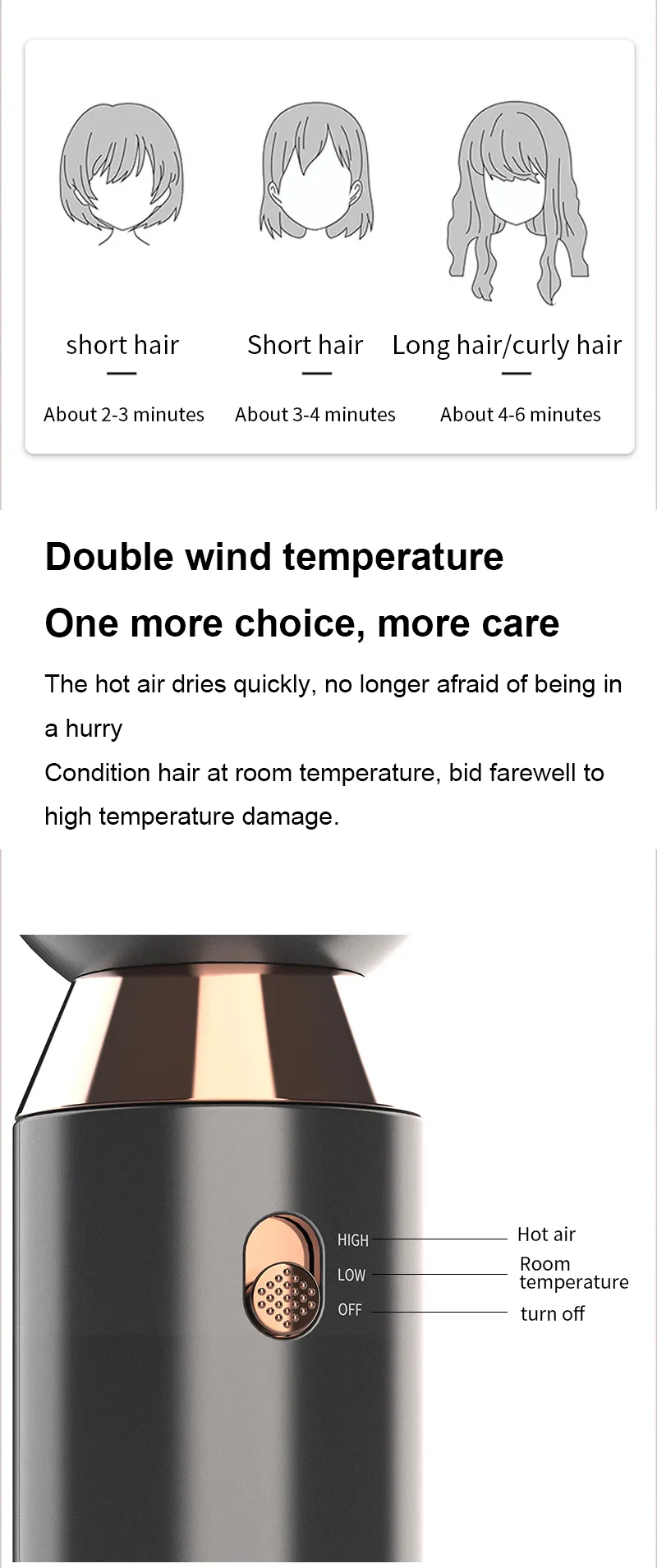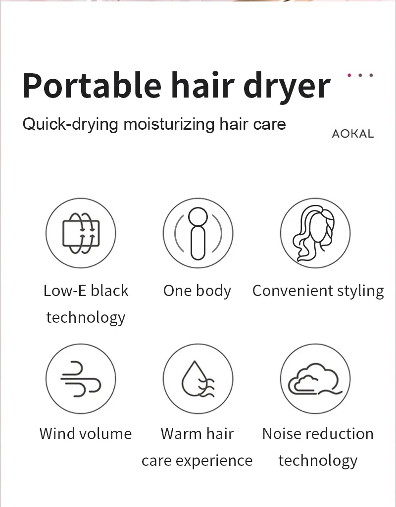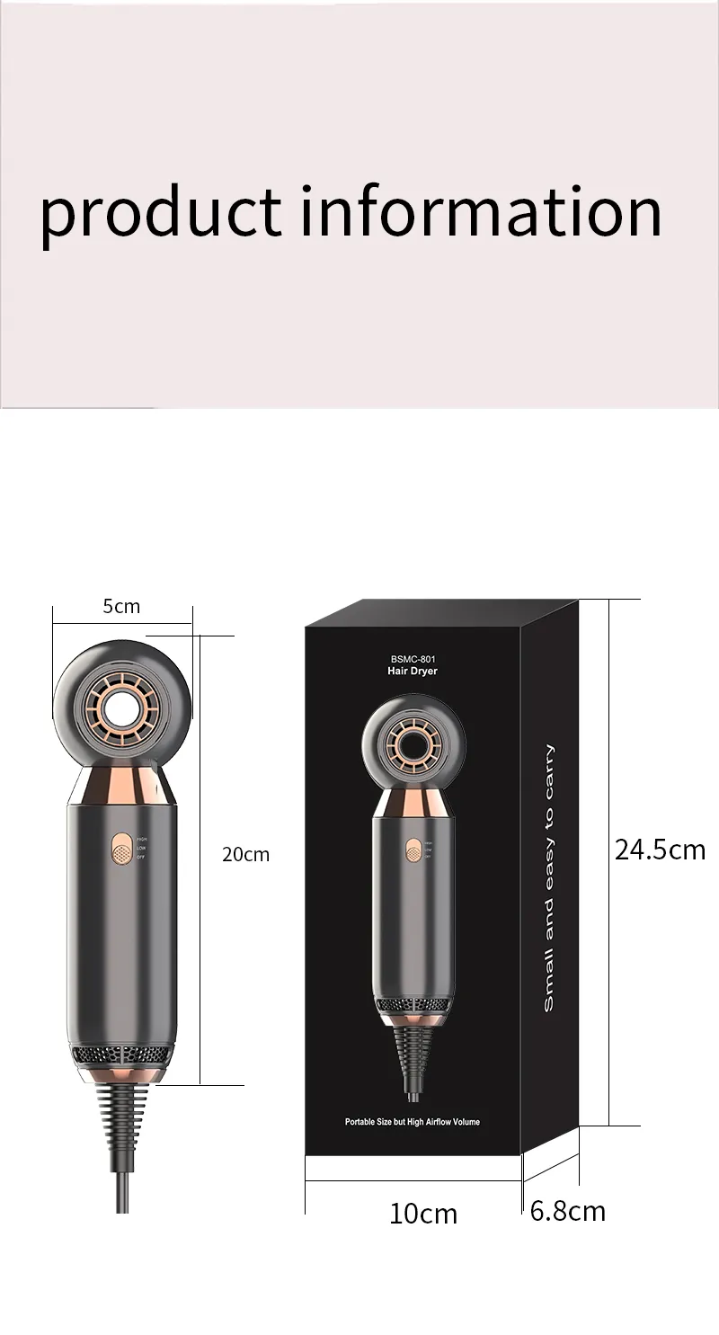 The Leafless Hair Dryer 800W Fan 2-Speed Electric Negative Ionic Blower is a revolutionary hair care device designed for convenience, efficiency, and professional-grade results. Whether you’re at home or on the go, this portable hair dryer combines modern design with cutting-edge technology to ensure that your hair dries faster, stays healthier, and looks flawless.