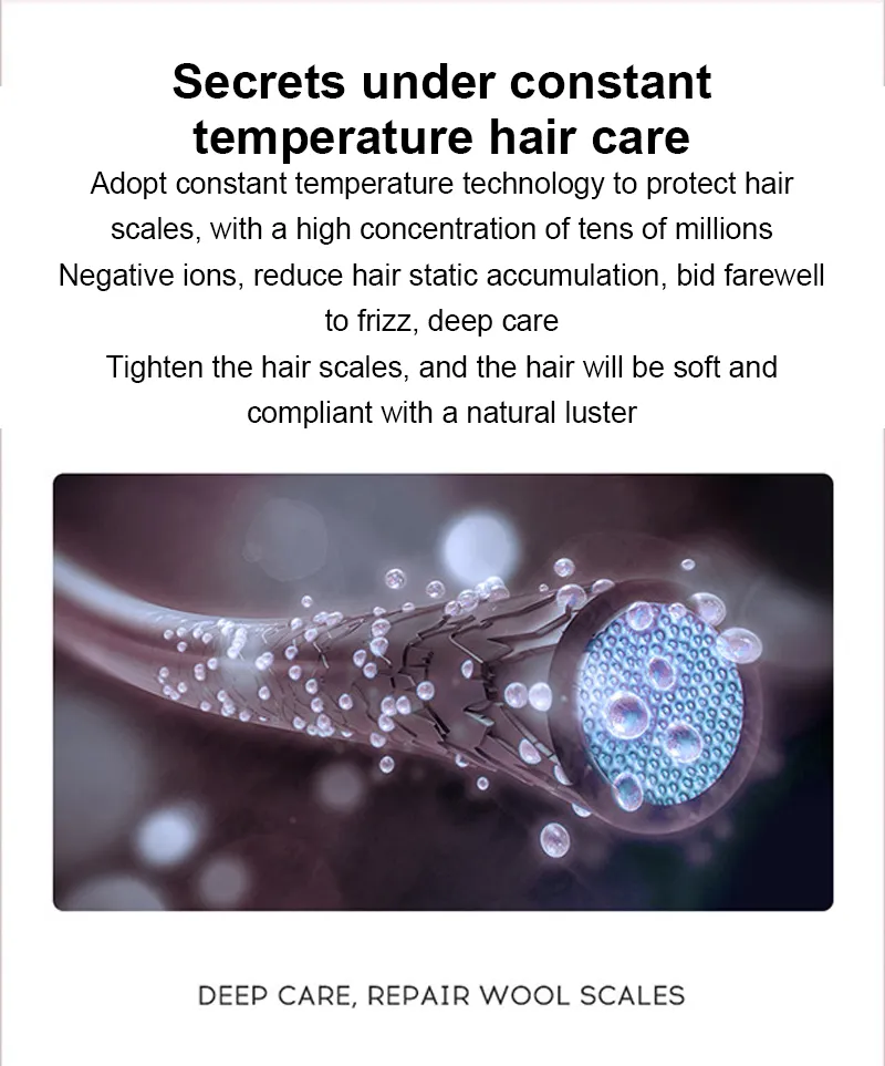 IONIC TECHNOLOGY & CONSTANT TEMPERATURE:Â Hair dryer with Negative Ionic Technology, emiting massive negative ions with temperature constant function to eliminate frizz makes hair moister, smoother,ensure the healthiest hair care protect hair from dull or damaged.